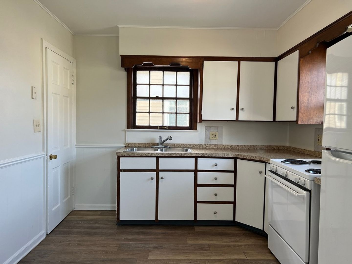 3-bedroom, 1-bath bungalow. Hardwood floors in living room and bedrooms. Two bedrooms on the first floor. Third bedroom upstairs has knotty pine walls. Unfinished basement with washer/dryer hook-ups. Large back yard. No garage. One pet allowed (one cat or one small dog, less than 40 lbs). $300 non-refundable pet fee. $25 monthly pet fee. Tenant pays all utilities. Tenant is responsible for lawn/snow maintenance. No smoking allowed.